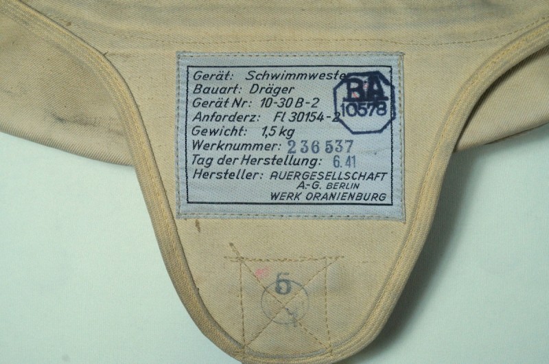 This is a fairly early example of the 10-30 B-2 life vest, fully intact and in very fine condition.