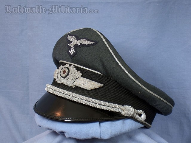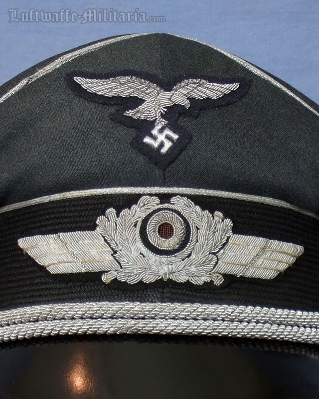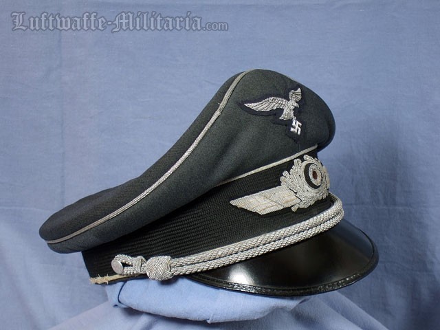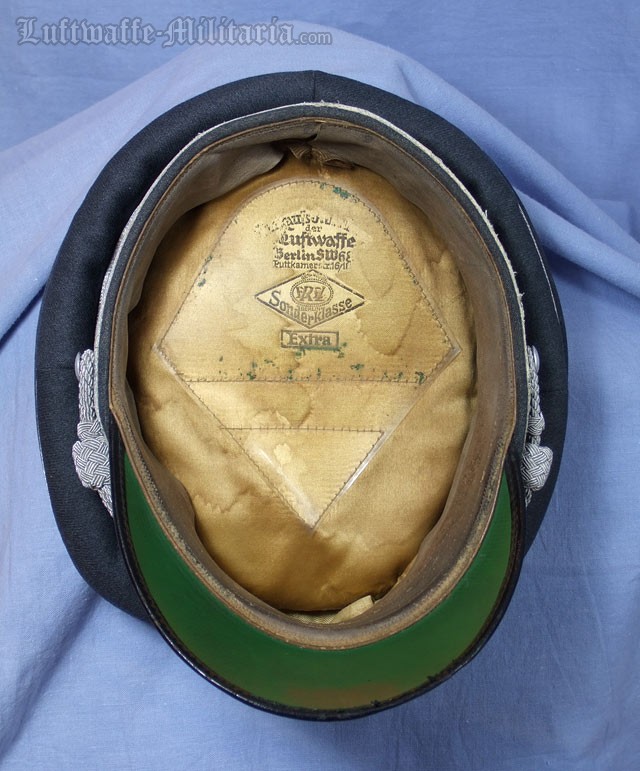 Cap shows overall light wear with some fraying to the lower rear piping and a few spots of surface oxidation on the wreath. No mothing anywhere!