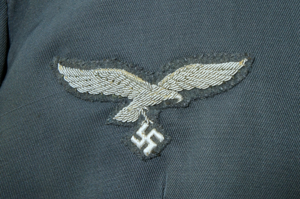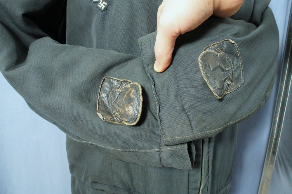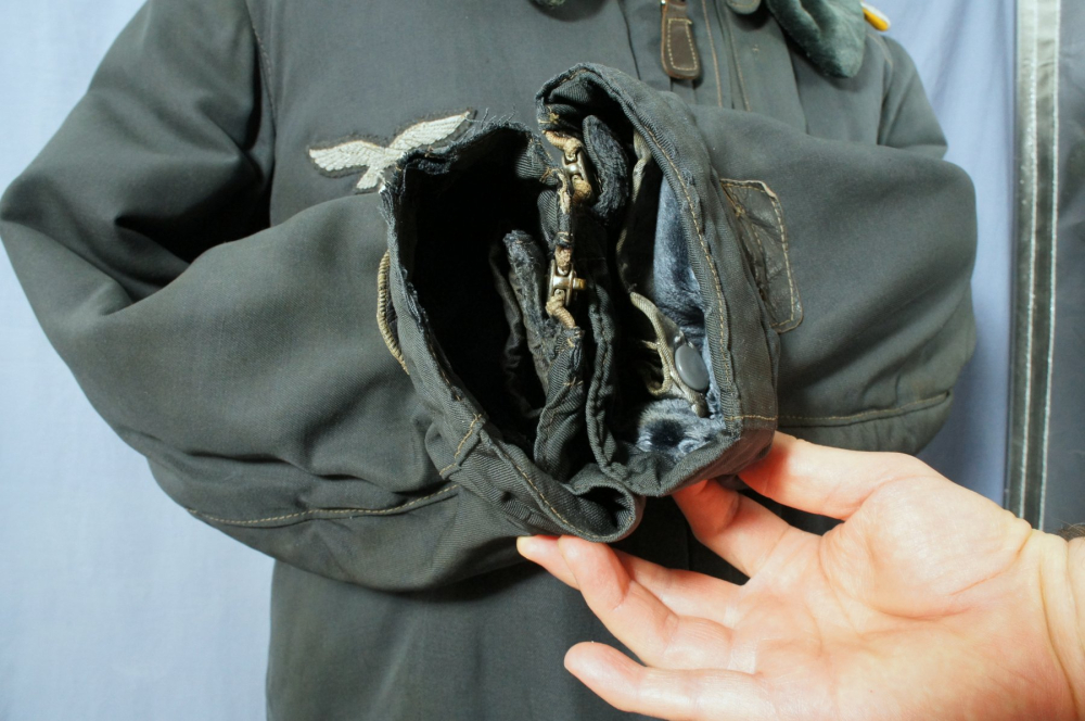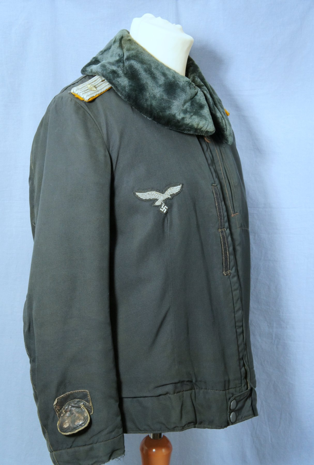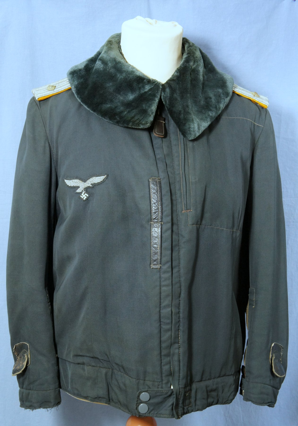Excellent example of the so-called 'heated' flight jacket featuring a beautiful bullion officer's breast eagle and slip on shoulder boards for an Oberleutnant of Flight.