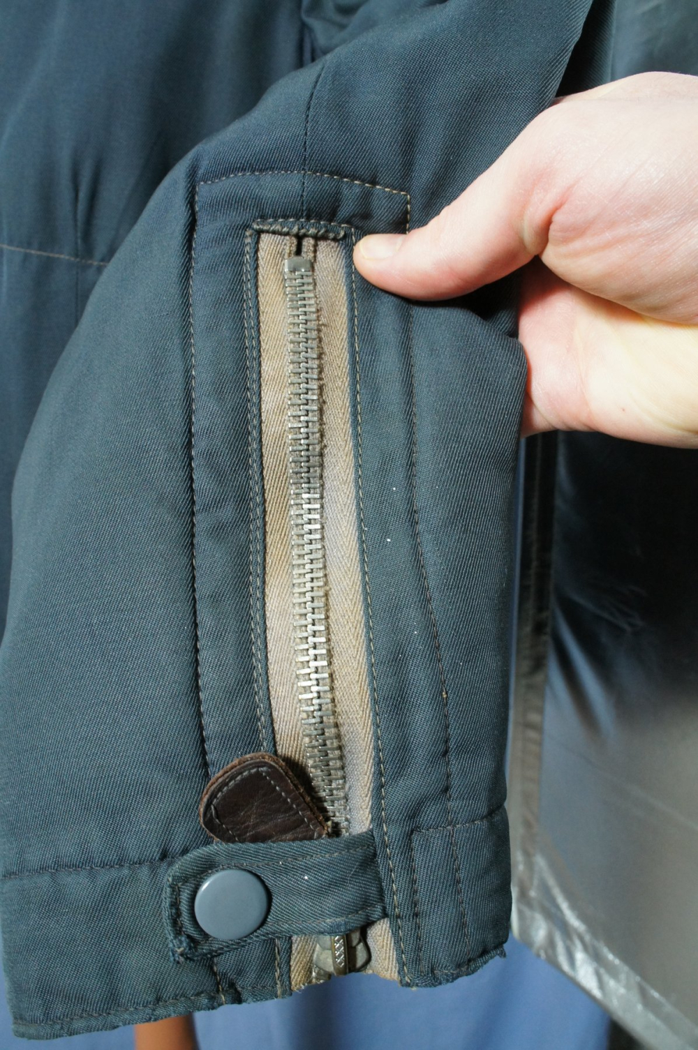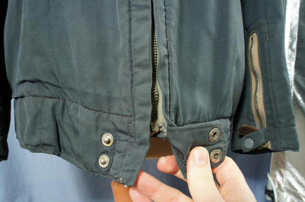 All zippers and snaps are the original ones and fully working, and the zippers still have their original leather pullers. Sleeve zippers are the 'Elite' marked ones, and the front is marked 'PRYM'.