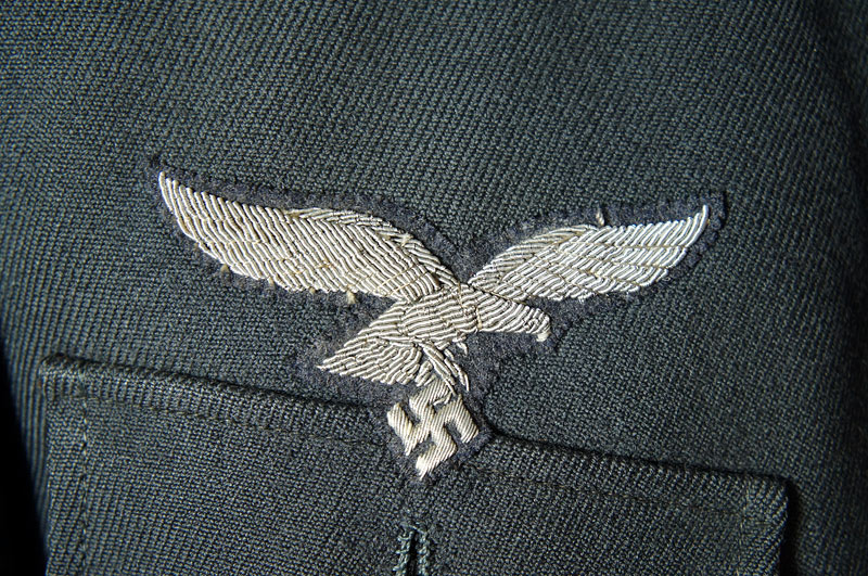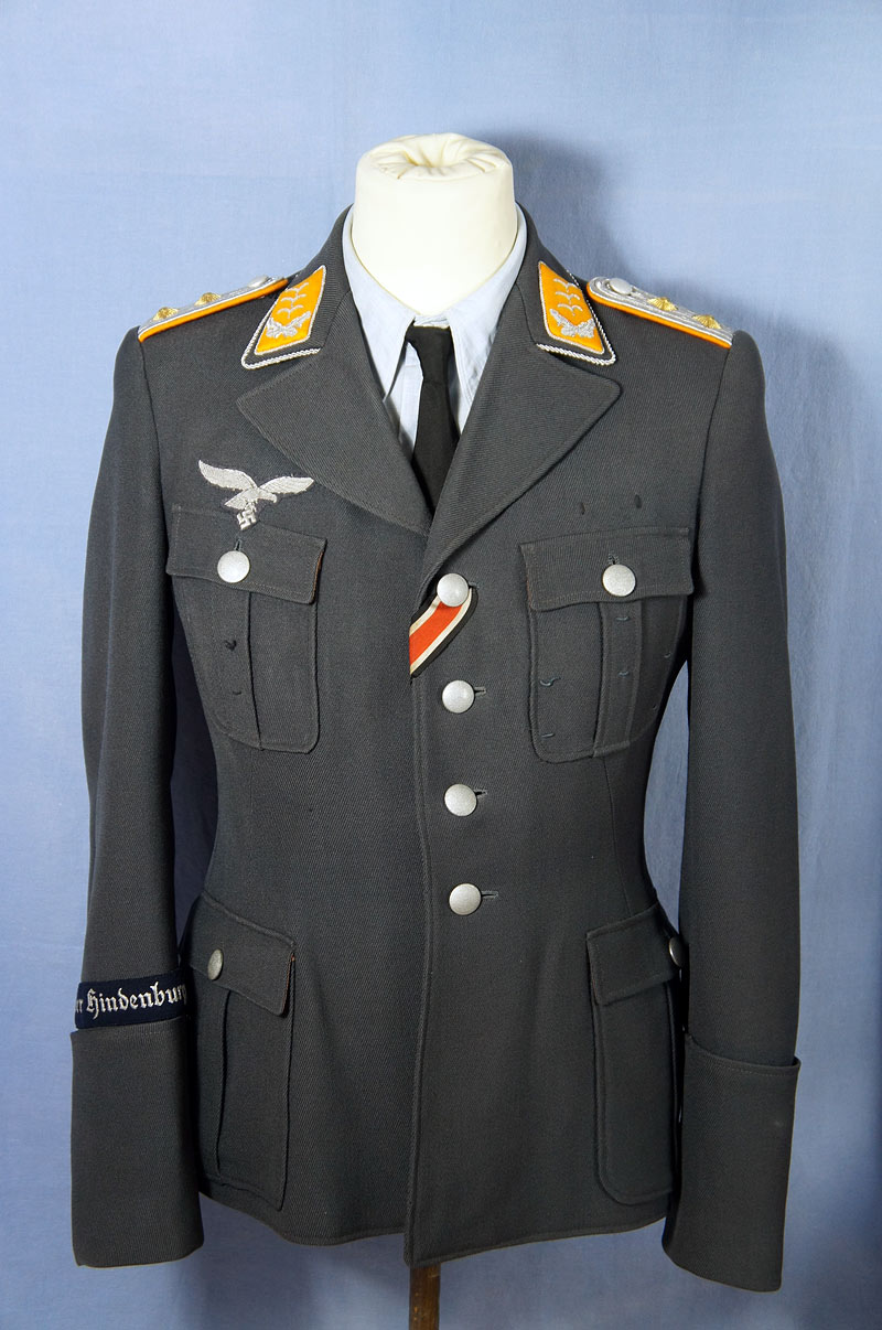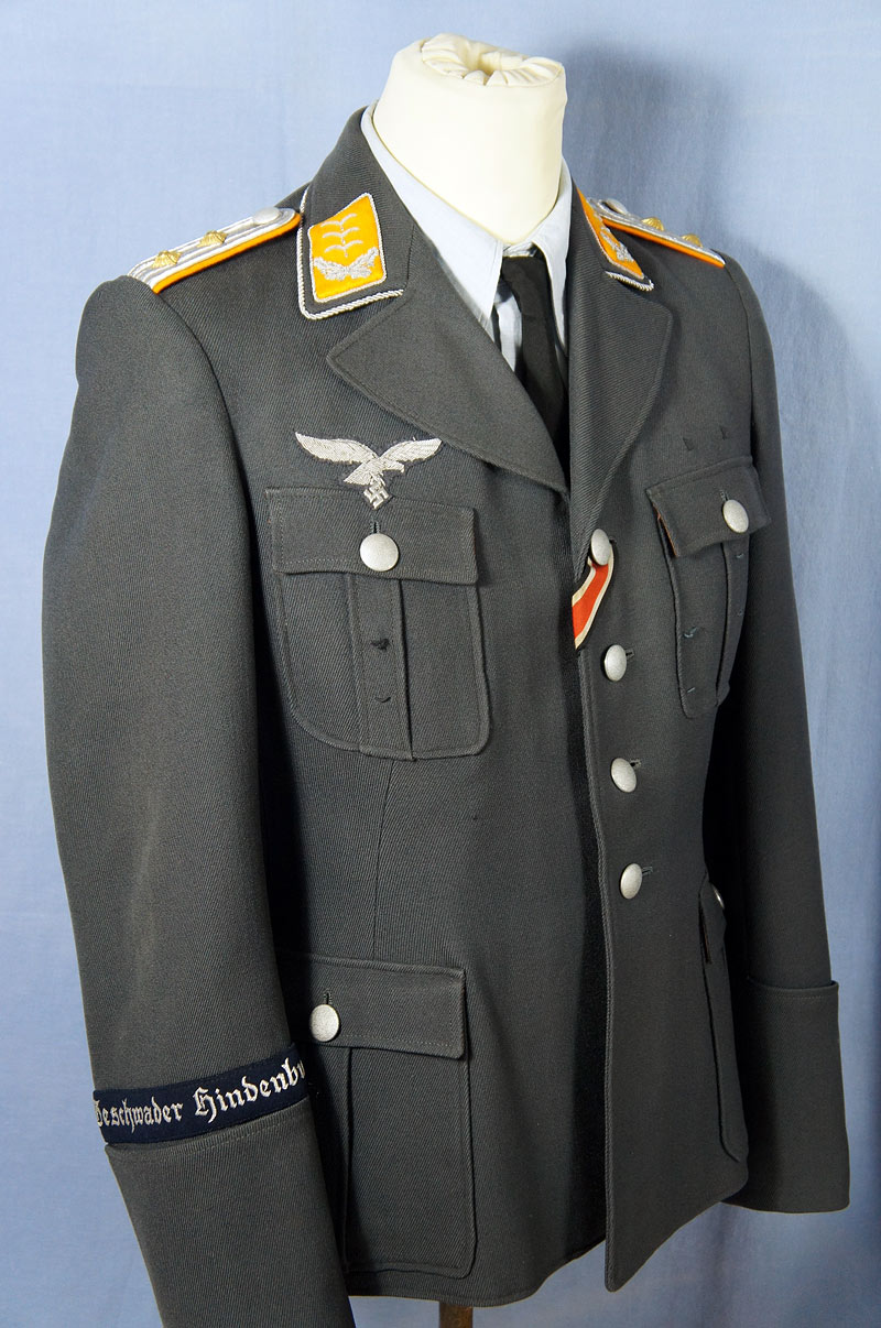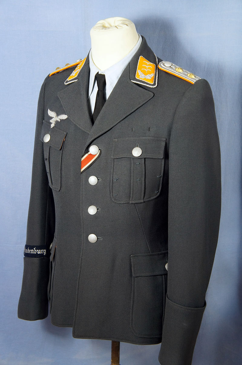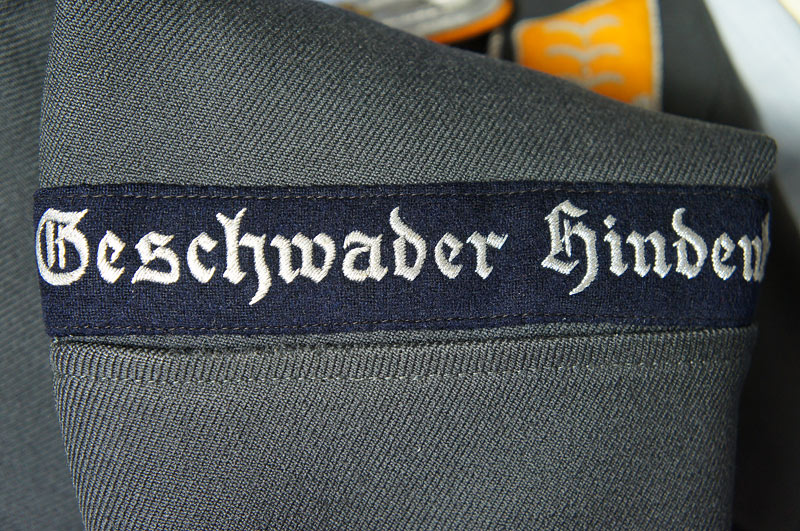 On the right sleeve is a very neatly hand applied officer's version of the 'Geswchader Hindenburg' cufftitle - qualitywise it's one of the finest examples of a LW officer's cufftitle I've ever seen.